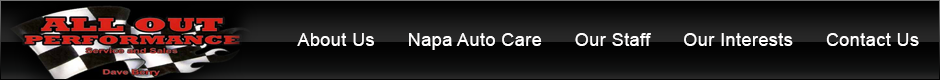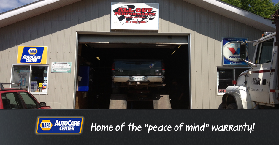 WELCOME TO ALL-OUT PERFORMANCE - ATHENS, ONTARIO Welcome to All-Out Performance! Thank you for dropping by our website. Please take a few moments to check out our website and see the services that we offer. We are a proud member of the NAPA Auto Care family, and strive to get your car or truck serviced and back on the road with little delay as possible. We are very active in our community, and support several area sports teams. Check out our interests section and read more about what we do away from the shop. We are a proud member of the Athens Chamber of Commerce, and a member of the CFIB (Canadian Federation of Independent Business).